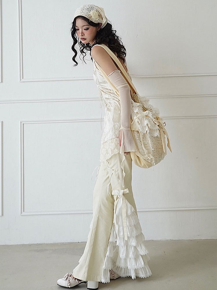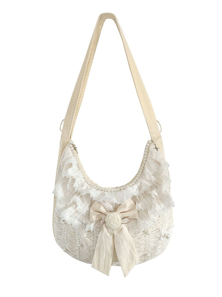 Add a touch of whimsy to your outfit with our bead and butterfly details crossbody. This charming beige bag features delicate bowknot and flower embellishments, adding a sweet and feminine touch to your look. Made from durable canvas fabric, it boasts a spacious interior, perfect for carrying all your essentials. The ruffle trim adds a playful and stylish element to the design.