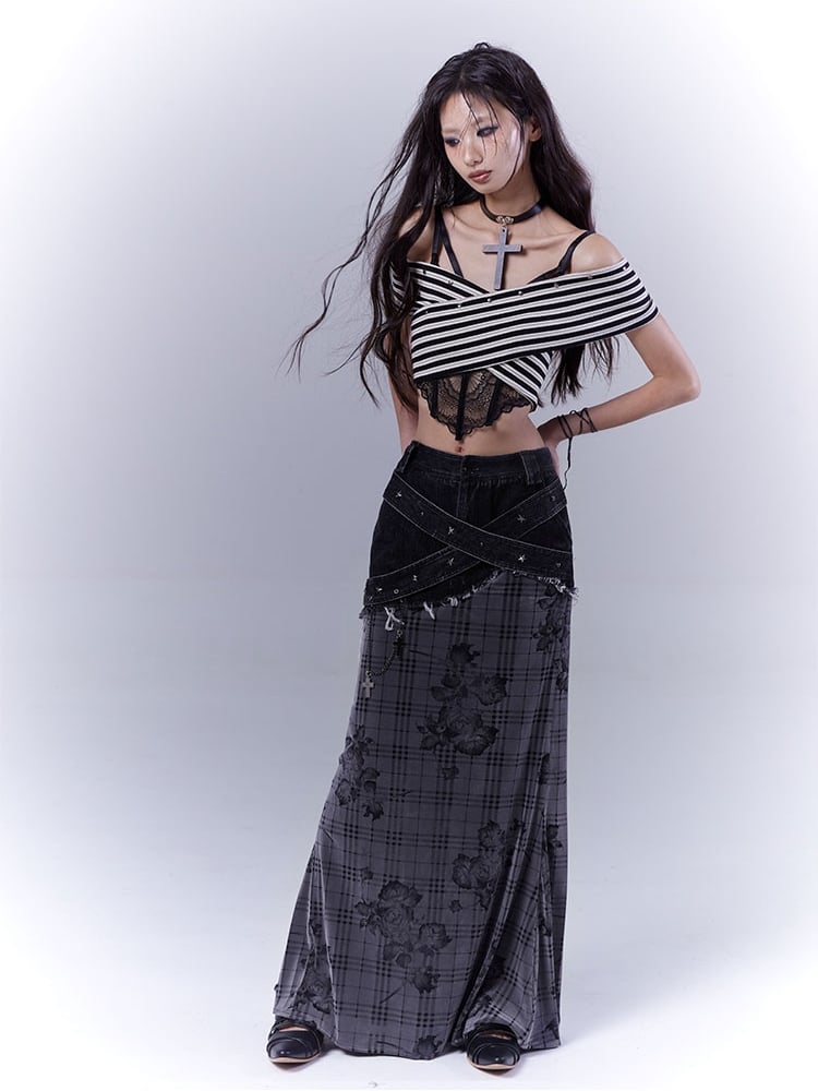 Elevate your wardrobe with this stylish black and white striped off-shoulder strapless top. Perfect for adding a touch of sophistication to any outfit, this top features a classic monochrome stripe pattern that exudes timeless elegance. The off-shoulder design beautifully highlights the neckline and shoulders, while the strapless cut enhances its modern appeal.