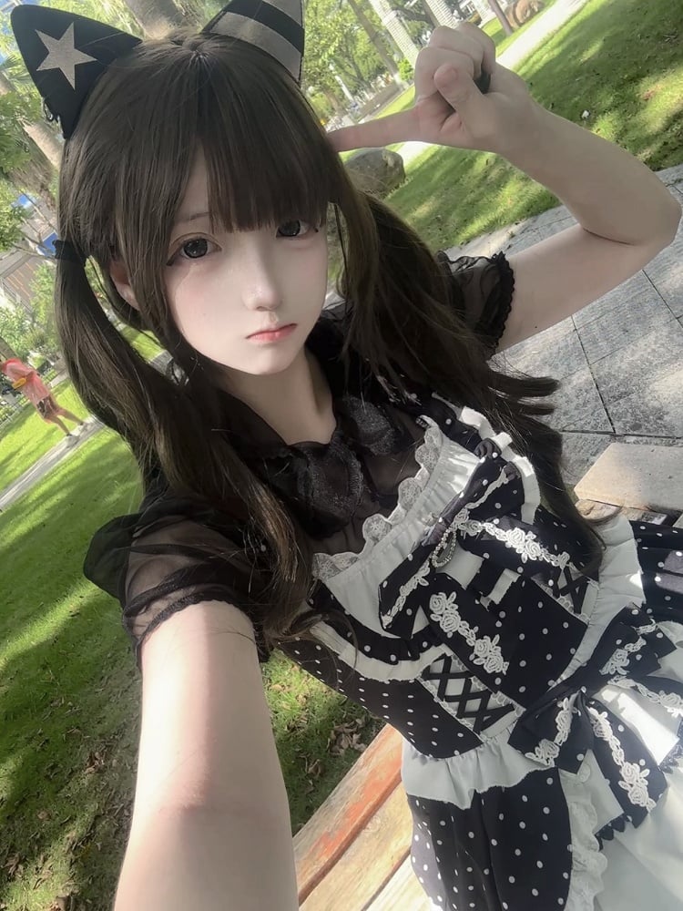 Embrace timeless elegance with this vintage-inspired ensemble. The halter neck dress showcases a classic black and white polka dot pattern, exuding sophistication and charm. Its layered skirt adds volume and movement, perfect for twirling at any occasion. Paired with a semi-sheer tulle blouse featuring a delicate Peter Pan collar, this outfit combines retro allure with modern grace.
