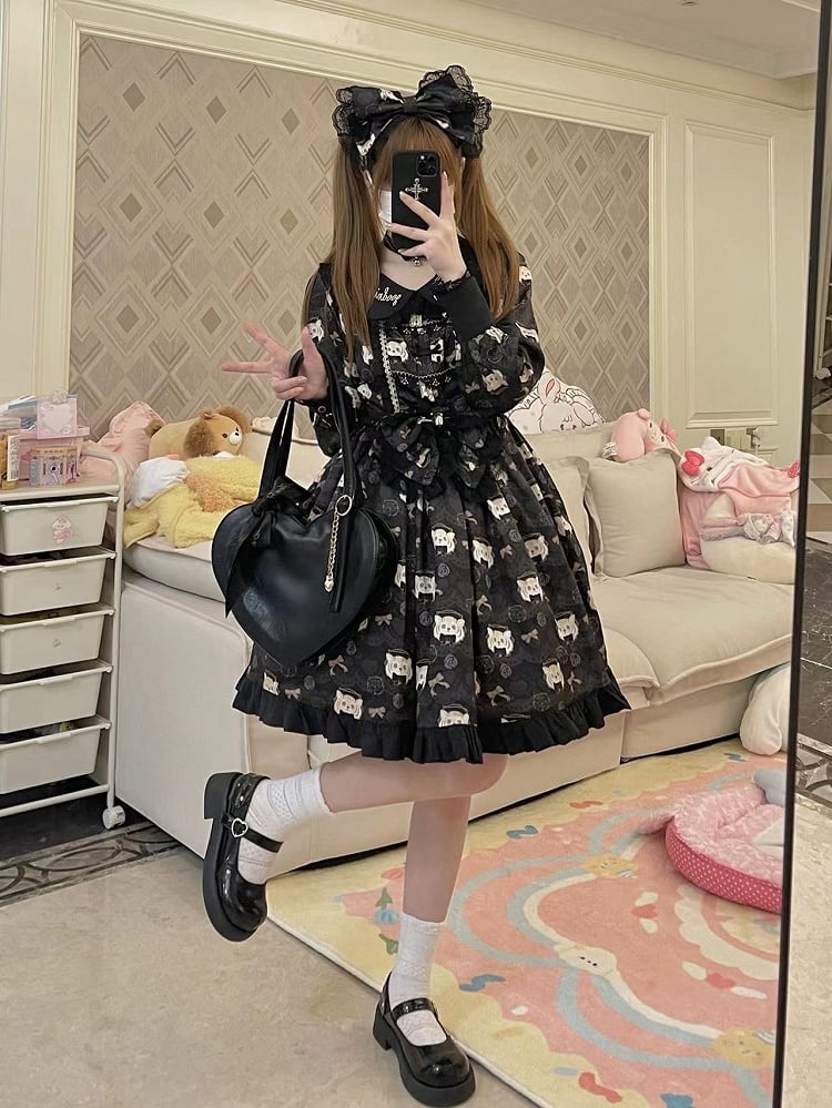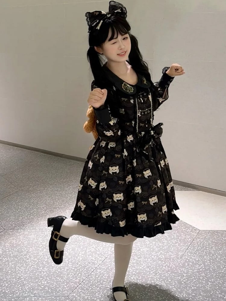 Introducing our charming Sweet Lolita Dress in a timeless white hue, adorned with an adorable tiger print. This dress combines the playful spirit of Lolita fashion with a touch of fierce elegance. The ruffled hemline adds a delicate flair, making it perfect for those who love to express their unique style with a blend of sweetness and boldness.
