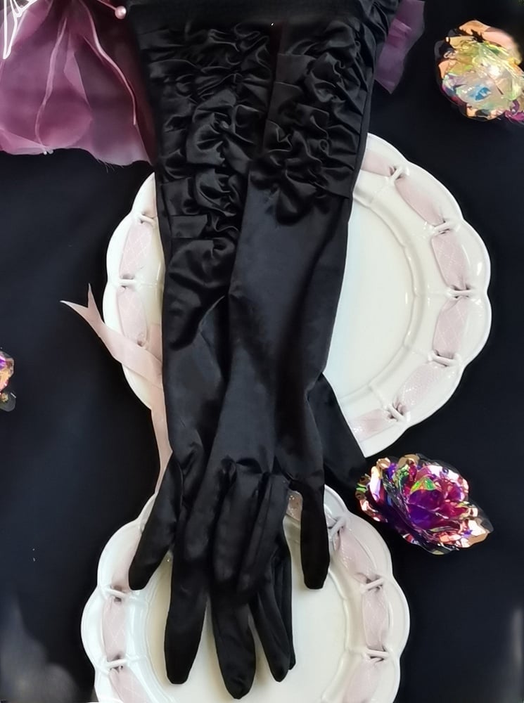 This price includes a dress, a flower clip at the waist and a pair of long gloves.