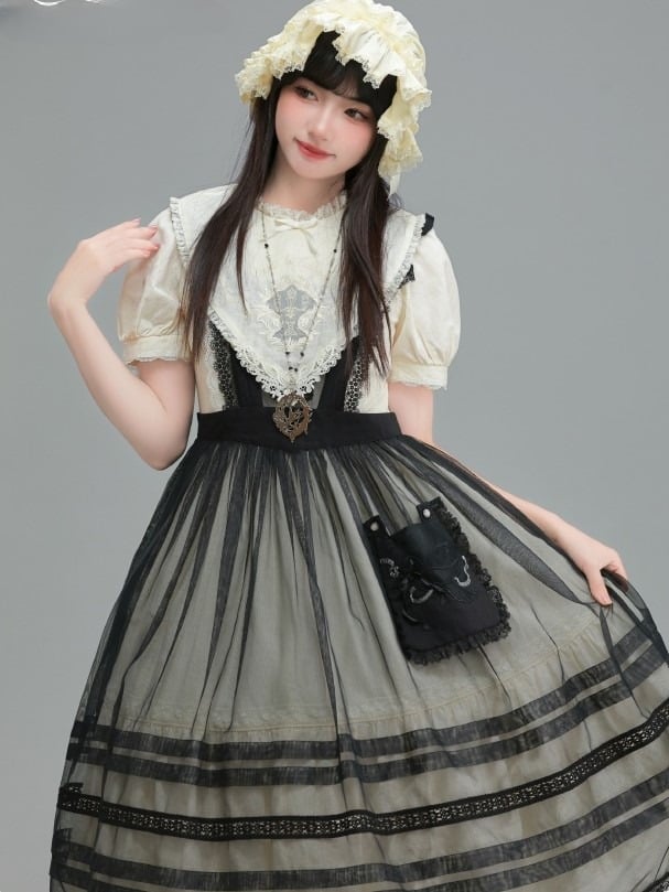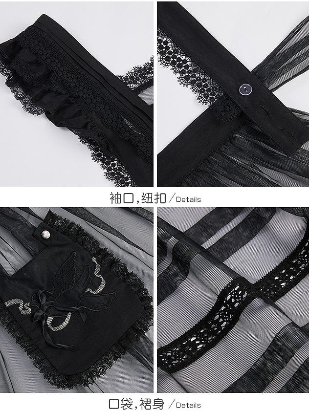 This enchanting black Lolita dress is adorned with delicate lace trims that add an air of charm. The dress features beautifully embroidered pocket, blending practicality with intricate artistry. Perfect for those who appreciate the elegance and whimsy of Lolita fashion, this piece is a delightful addition to any wardrobe.