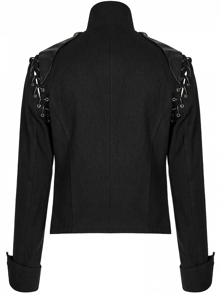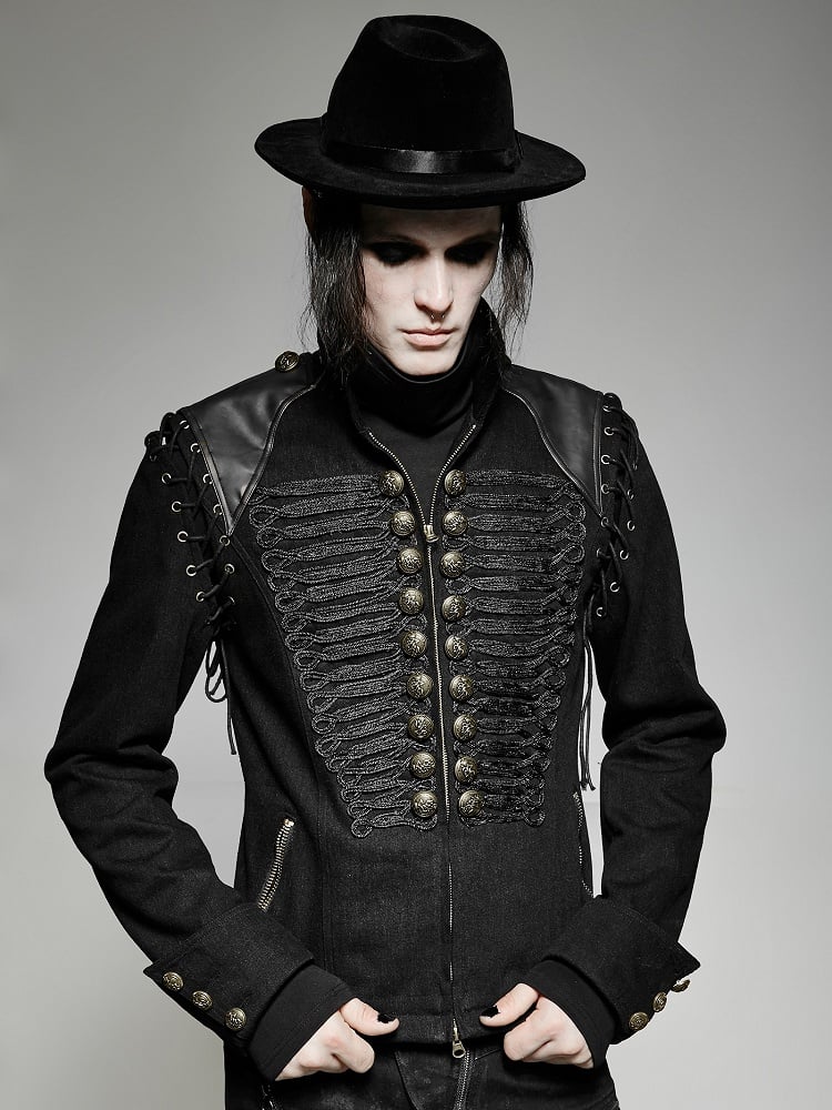 Front bronze buttons decoration enhances masculinity, with double zipper pulls.