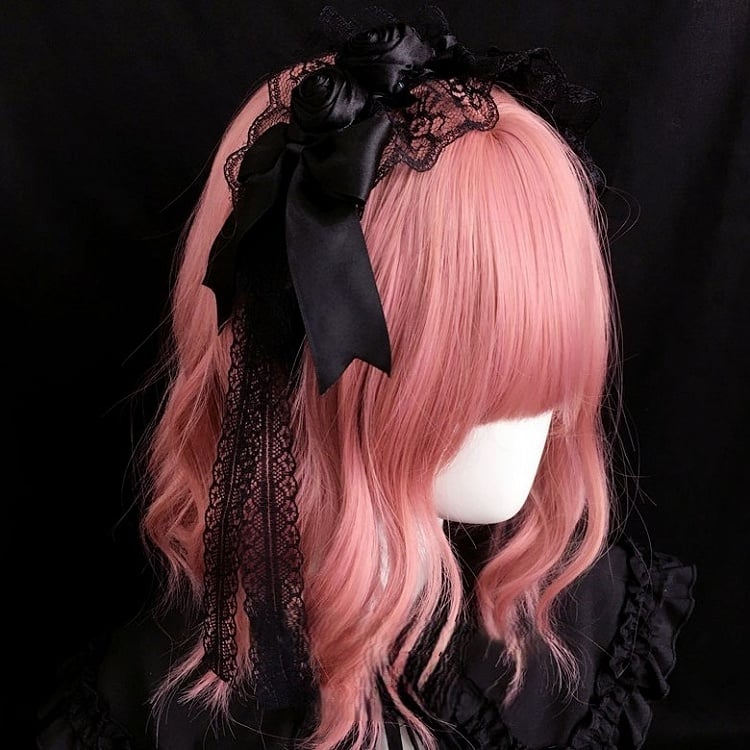 In Lolita style, this bowknot KC features charming black lace trim. The rose and lace design makes it suitable for Lolita outfits and daily elegant-style styling.