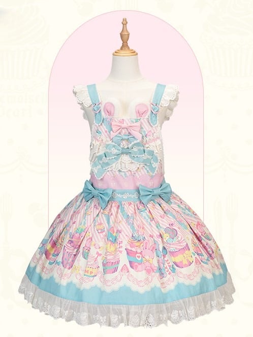 Indulge in whimsical charm with this enchanting Lolita Dress, featuring adorable sweet bunny and cupcake print that captures the essence of playful elegance. The chest is adorned with unique bunny ear design, adding a touch of cuteness and fantasy to your ensemble. Crafted with care, this piece is a must-have for Lolita fashion enthusiast looking to add a dash of sweetness to their wardrobe.