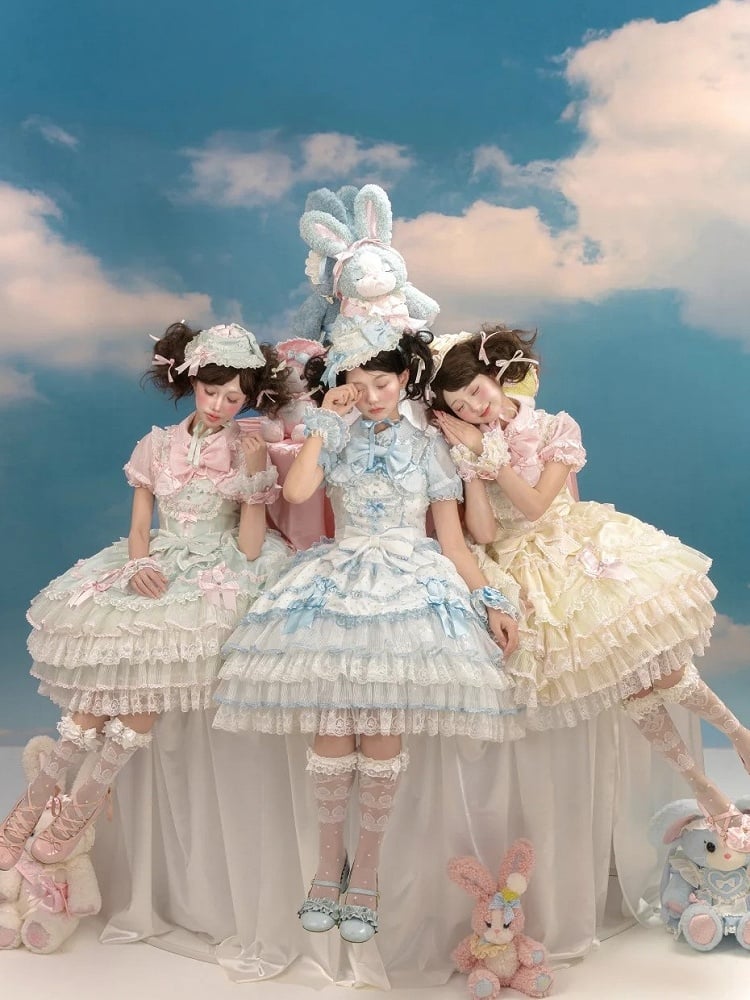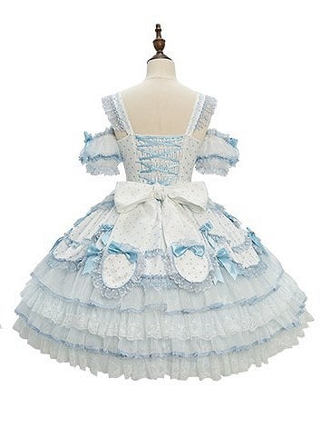 This captivating jumper skirt is a delightful blend of elegance and whimsy, designed to make you feel like royalty. The dress features polka-dot pattern and charming bow accents that adorn the skirt, the back is thoughtfully designed with elastic for a comfortable fit, while a discreet side zipper ensures ease of wear. For added versatility, the dress comes with detachable puff sleeves, allowing you to customize your look effortlessly.