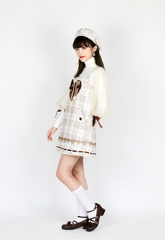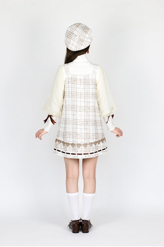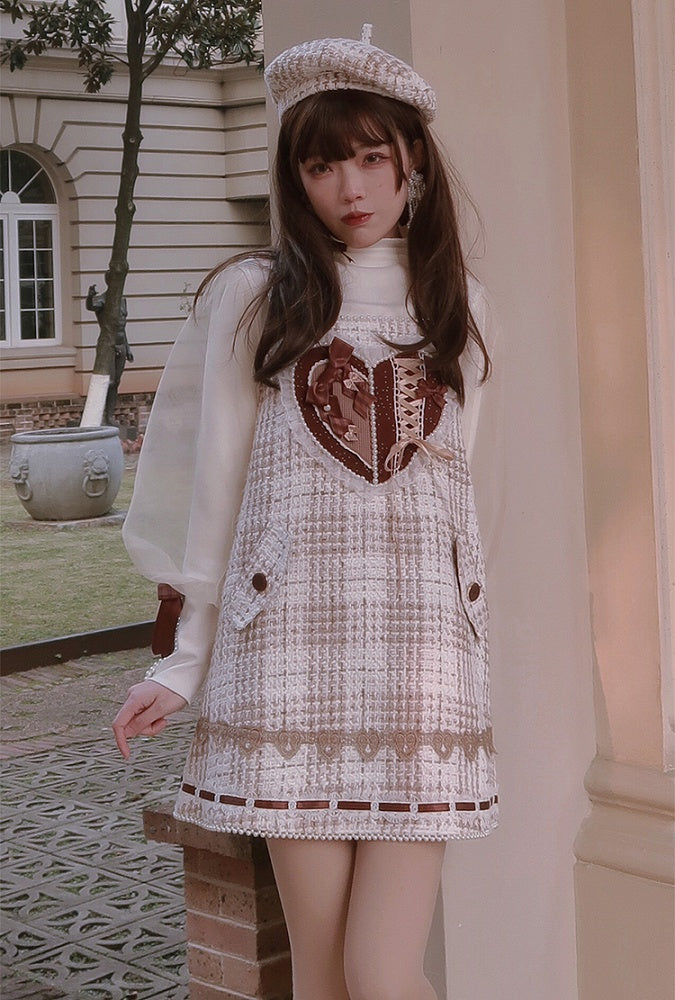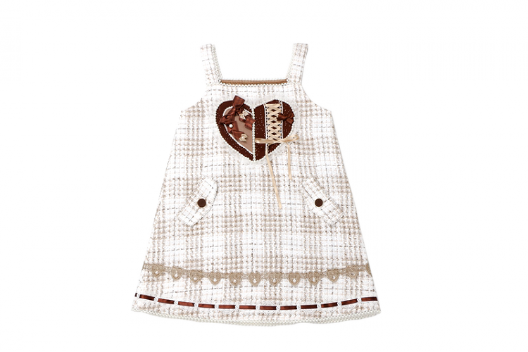 Features: It features peral trimming square neckline, bowknot and heart-shaped on the front, A-line woolen dress.