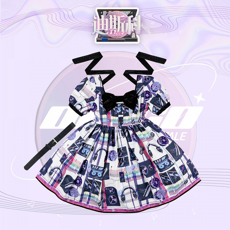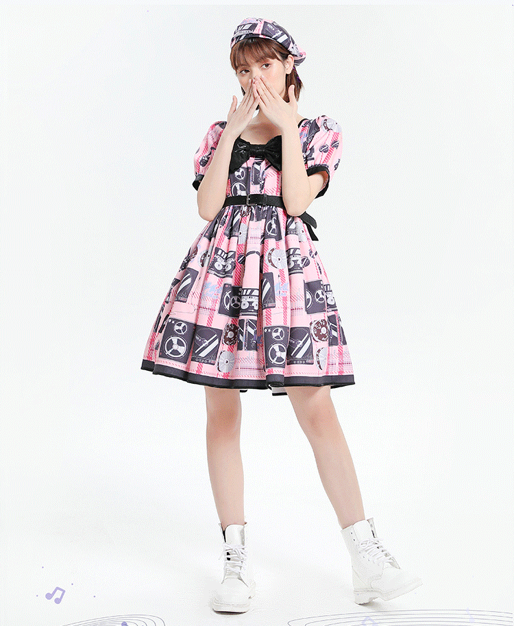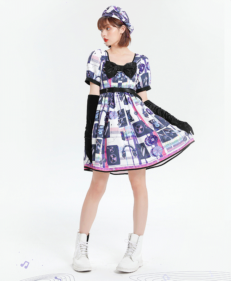 Features: It features square neckline with bowknot front, short puff sleeves, removable waistbelt on empire waist, back with shirring, print dress.