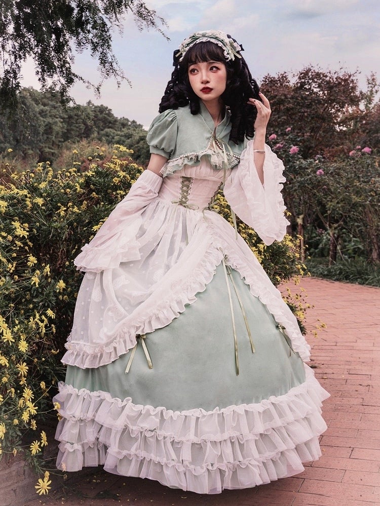 Princess Ariel vibes green long ball gown, one of your Renaissance festival dress options. Cute vintage prom or quinceanera dress.