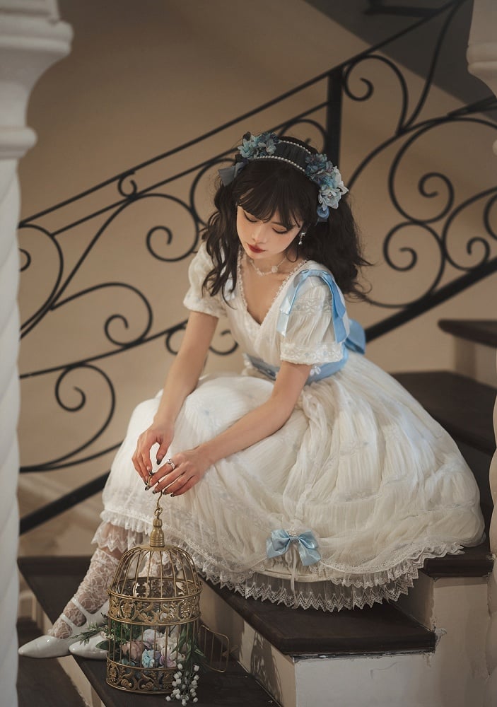 Attention: This price includes an OP, 2 bowknots at the shoulders, 4 bowknots at the hem, one waistband, and one waistband with flowers design, others are not included.