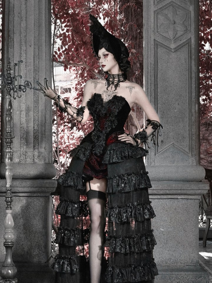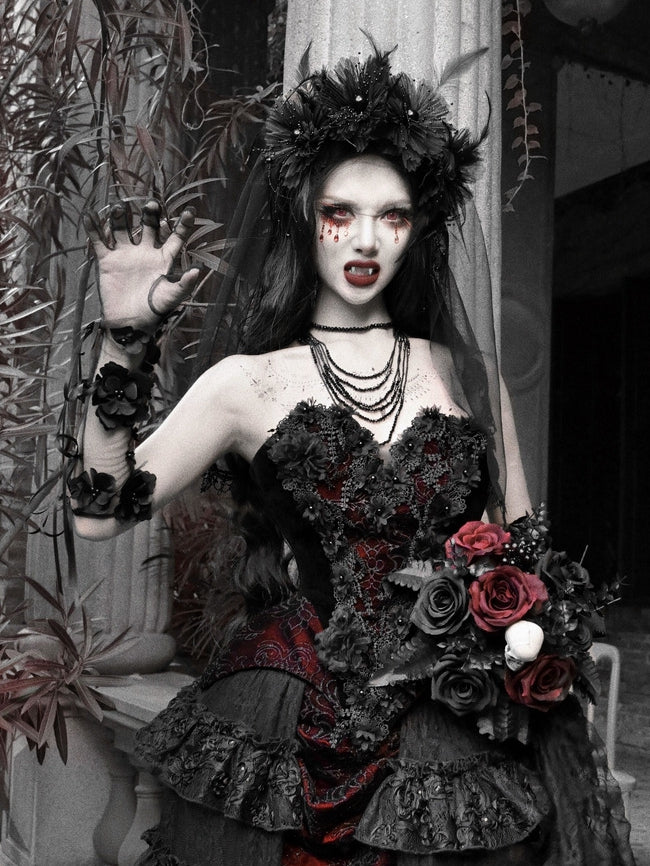 These elegant black gloves are a stunning accessory perfect for adding a touch of gothic sophistication to any outfit. Crafted from delicate sheer mesh, they feature intricate floral appliqués made of rich black fabric, creating a striking three-dimensional effect. Adorned with dainty bows and bead embellishments, these gloves combine romance with a hint of drama.
