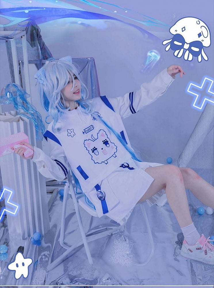 The design showcases a chic zippered stand collar, adding a touch of modernity to its cute aesthetic.