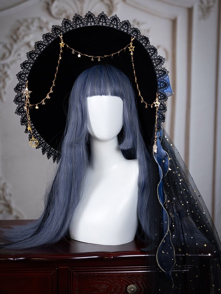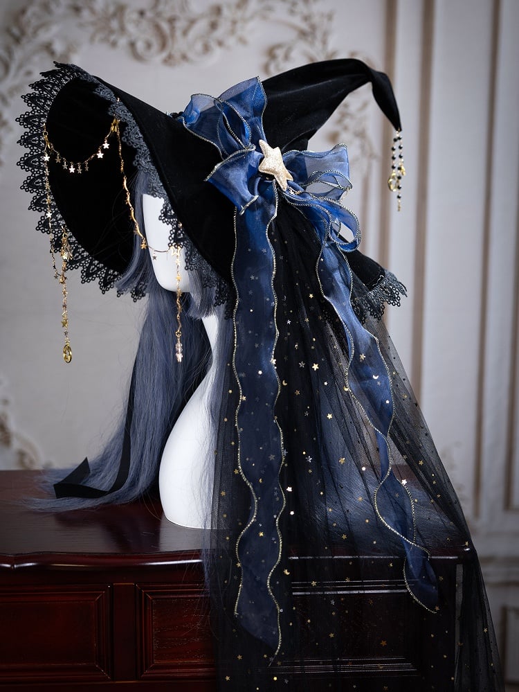 Finished with a sparkling star chain and a dreamy starry-night veil, this piece adds just the right touch of gothic glamour and mysterious shine.