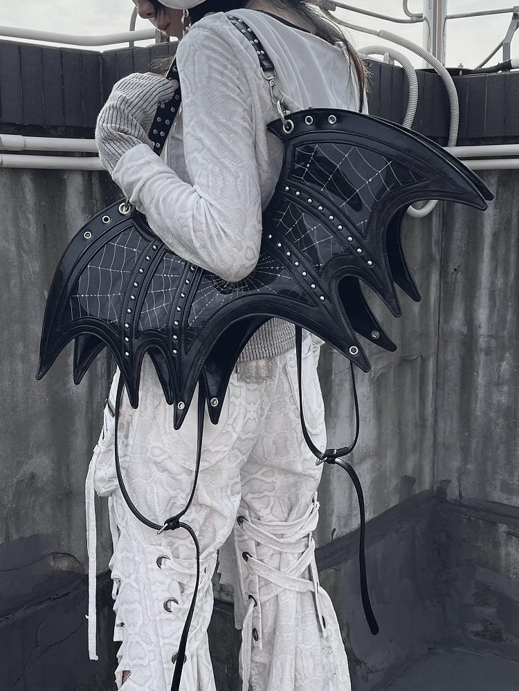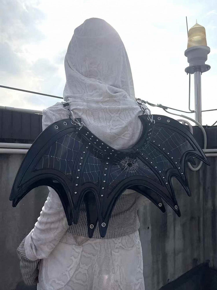Introducing our Gothic Bat-Inspired Bag – a daring fusion of style and functionality. This edgy accessory combines sleek leather with transparent PVC for a striking contrast. Adorned with spider web prints and punk metal studs, it embodies dark gothic aesthetics with a rebellious twist. The standout bat shape adds an element of intrigue, perfect for those who embrace the unconventional.