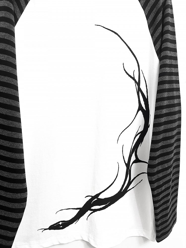This t-shirt combines a modern colorblock design with a bold snake print, creating a striking yet versatile piece. The soft gray and white palette offers a sophisticated contrast, while the snake motif adds an edgy, fashion-forward touch. Perfect for those who love to make a statement with their casual wear.