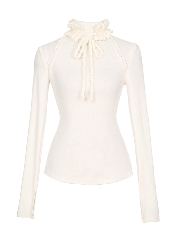 The turtleneck collar is designed to naturally stack and create relaxed folds, offering a cozy and casual look. The cuff features a unilateral slit design, adding a touch of uniqueness, on both sides of the shoulders, fuzzy trim is incorporated through seamless stitching, enhancing the visual depth and adding a delightful textural contrast.