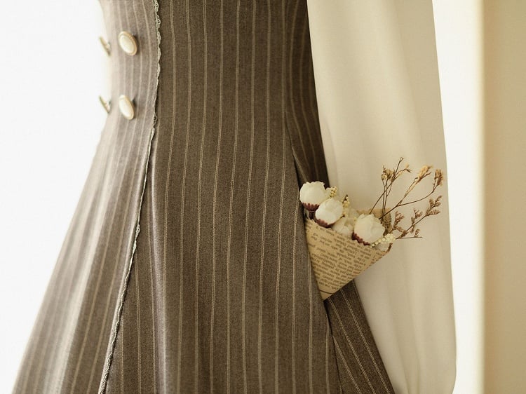 Features: It features high waist underbust design, four buttons at waist, removable halter and big bowknot, lace-up back waist, flounce hemline.
