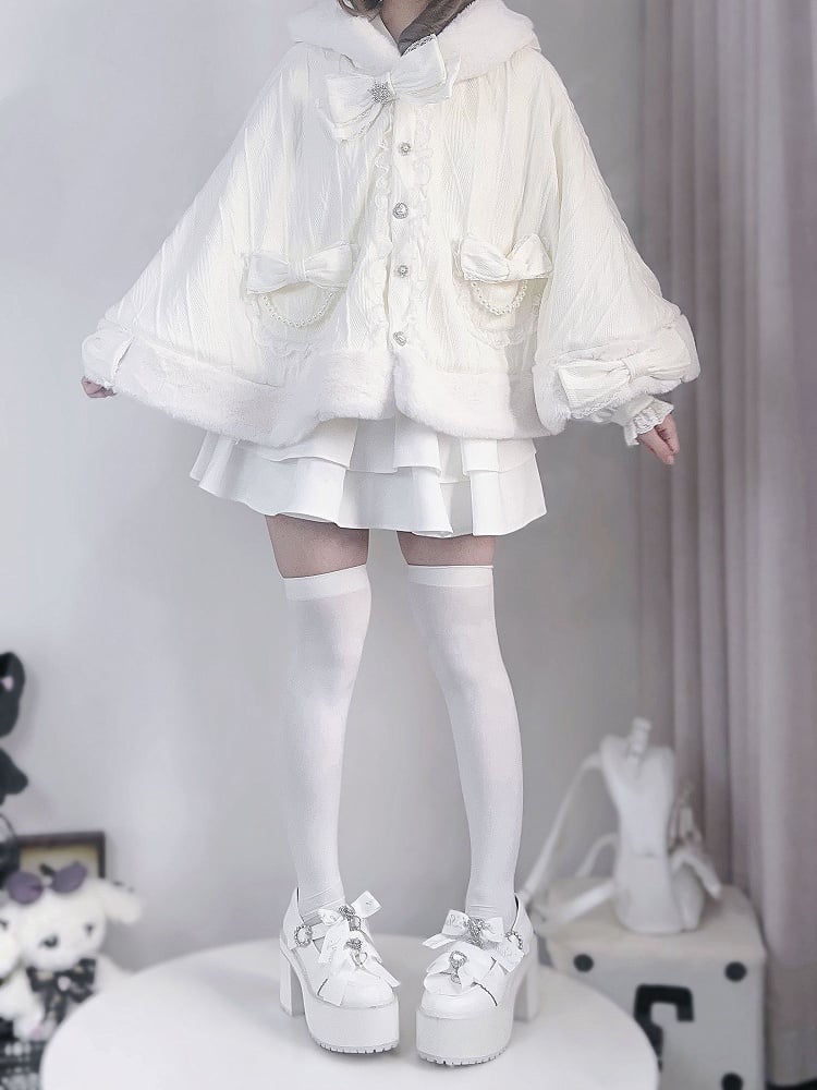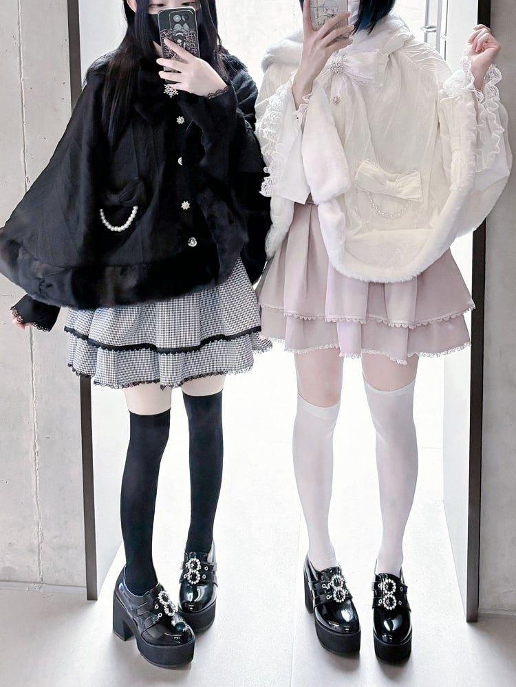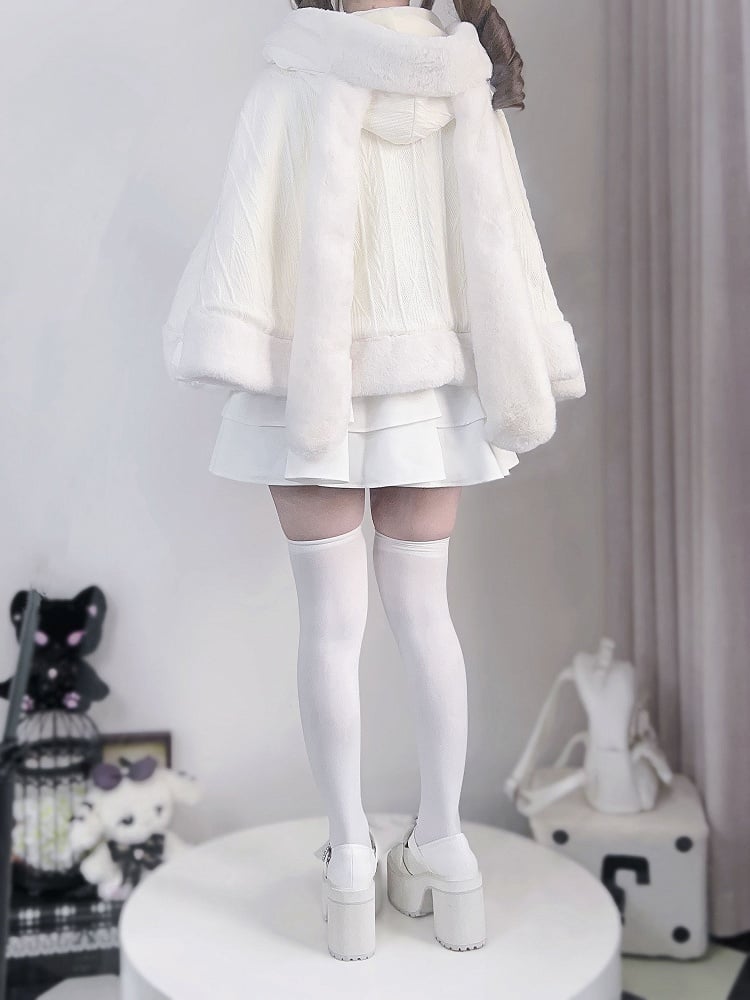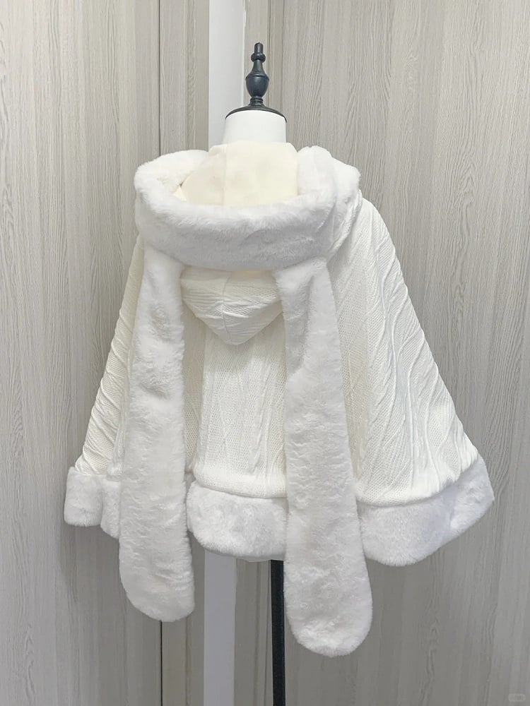 Wrap yourself in whimsical charm with our Jirai Kei-inspired plush cape, available in both elegant beige. This cozy cape features delightful bunny ear accents, adding a playful touch to your kawaii wardrobe. Perfect for embracing the cute and mysterious essence of Jirai Kei fashion, this cape is a must-have for any fashion enthusiast looking to make a statement. Ideal for layering over your favorite outfits, it combines comfort and style effortlessly.