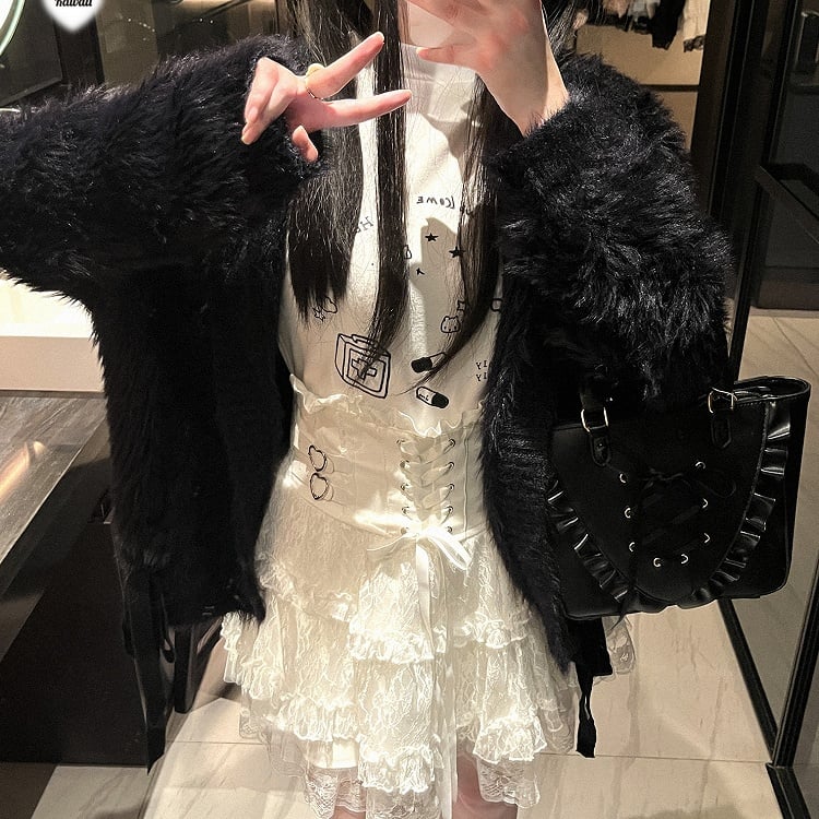 Elevate your wardrobe with this enchanting Jirai Kei cardigan, designed to blend the edgy Landmine style with sweet, kawaii charm. This knit sweater features a unique lace-up detail that adds a touch of playful elegance. The standout feature is the adorable bunny ear hood, perfect for those who love to infuse a bit of whimsy into their everyday look. Its loose fit ensures comfort and effortless layering, making it a versatile addition to any outfit. Whether you're going for a casual day out or looking to make a statement, this cardigan is your go-to for a fashionable and cozy ensemble.