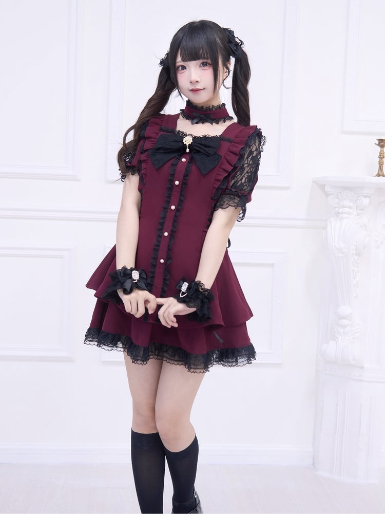 This price is for a dress, a skirt , a bowknot brooch, a choker.