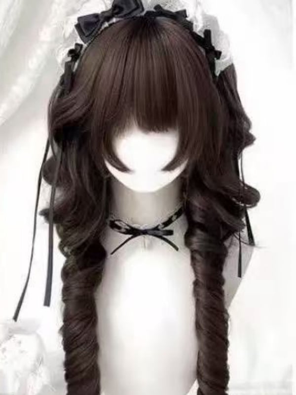 Light Brown 60CM Hime Cut Curly Wig with Full Bangs creates a sweet-edgy exquisite look with soft light brown, layered hime cut curls and face-slimming full bangs, fitting personalized scenarios.