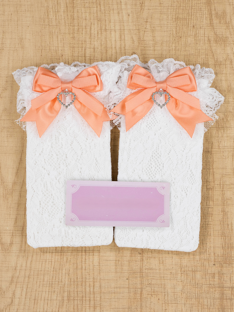 These orange socks feature a bow with heart-shaped rhinestone . Delicate lace trim adds romantic charm. Combines kawaii playfulness with elegant sparkle. Perfect for casual or dressy occasions. Adds vibrant color and glamour to any outfit.