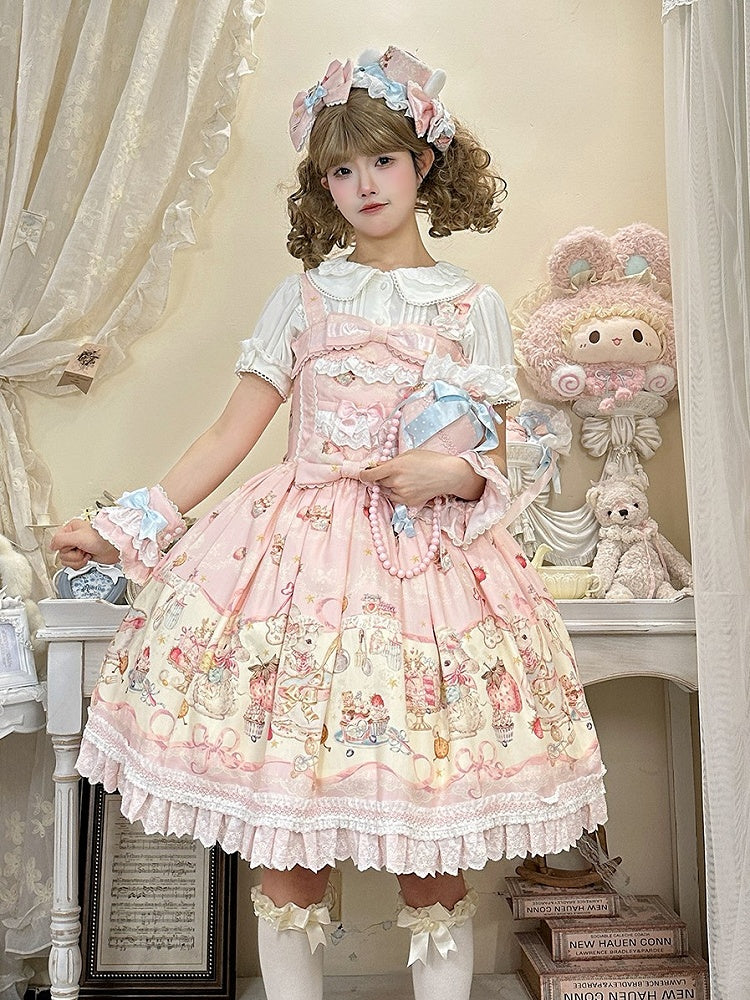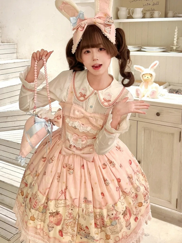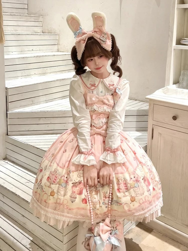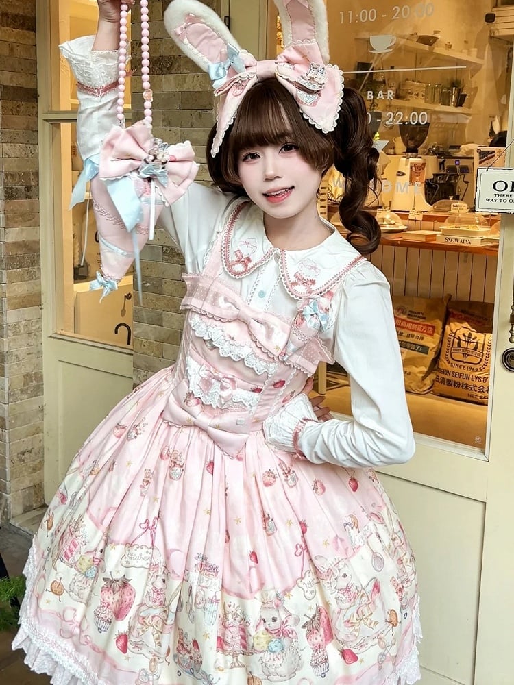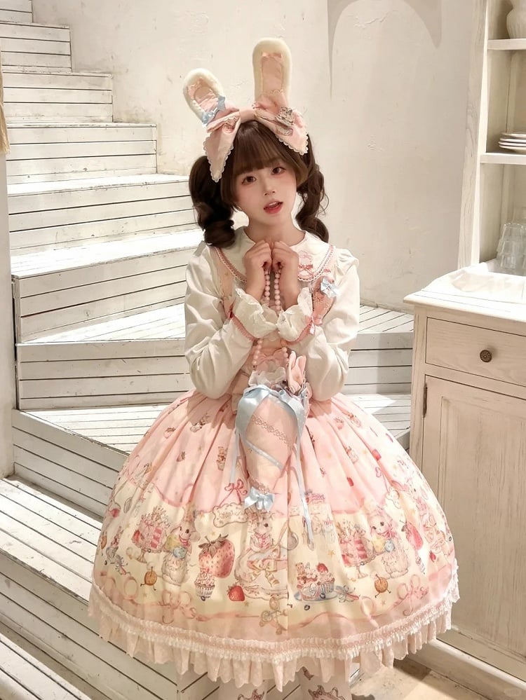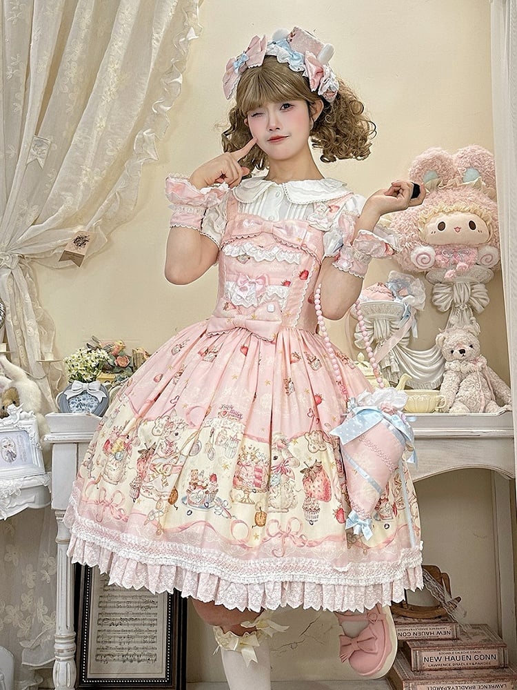 Step into a world of whimsy with this enchanting Sweet Lolita JSK dress. Adorned with an adorable pink bunny and dessert print, this dress captures the playful essence of Lolita fashion. The charming bow detail adds a touch of elegance, while the soft, flowing fabric ensures comfort and style.