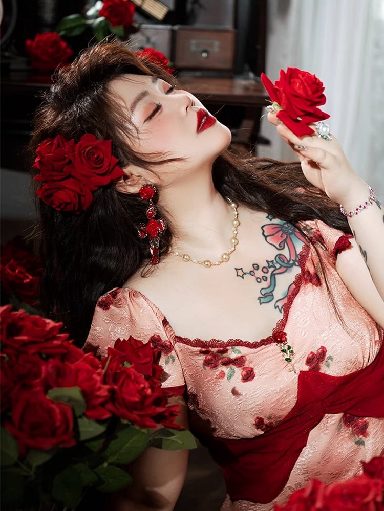 Embrace your inner romantic with this stunning plus size dress, adorned with a captivating red rose print. This enchanting piece combines timeless elegance with a touch of whimsy, making it perfect for any occasion. The flattering silhouette is designed to enhance your curves, while the vibrant floral pattern adds a burst of color and charm.