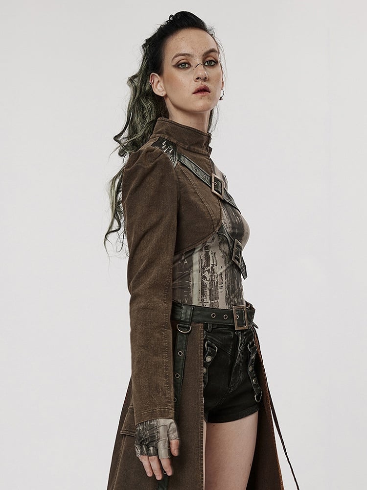 Handsome one-arm version, adjustable loops to fix the neckline, functional and decorative body faux leather loops
