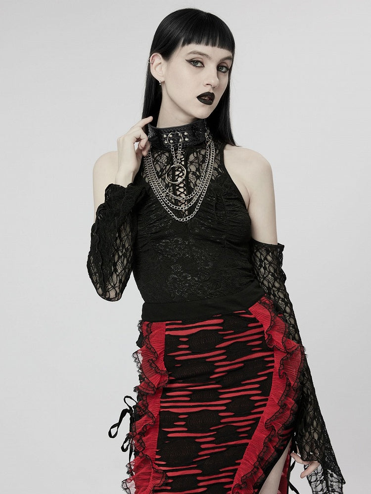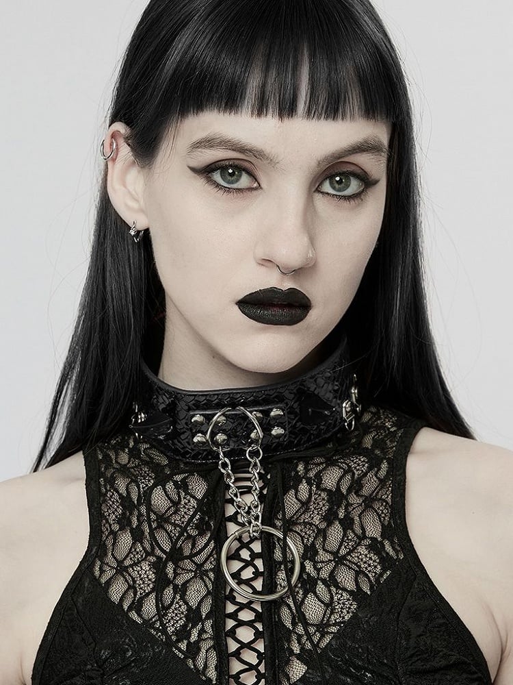 3. Unique rivets and suspended chain at center-front for decoration. The front chain is equipped with lobster clasp for easy installation and removal