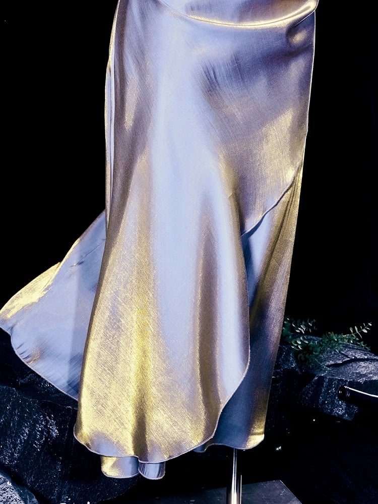 This exquisite dress features a cross-back design with adjustable shoulder straps, ensuring a perfect fit for every body type. The draped neckline beautifully reveals the collarbones, elongating the neck for a graceful silhouette. The waistline is accentuated with delicate pleats, creating a slimming effect that highlights your curves. The skirt is designed with an asymmetrical cut, adding a touch of sophistication and movement to your every step.Elevate your wardrobe with this versatile piece that seamlessly blends elegance and comfort. Perfect for any occasion, this dress is a must-have for those who appreciate fine details and impeccable design.