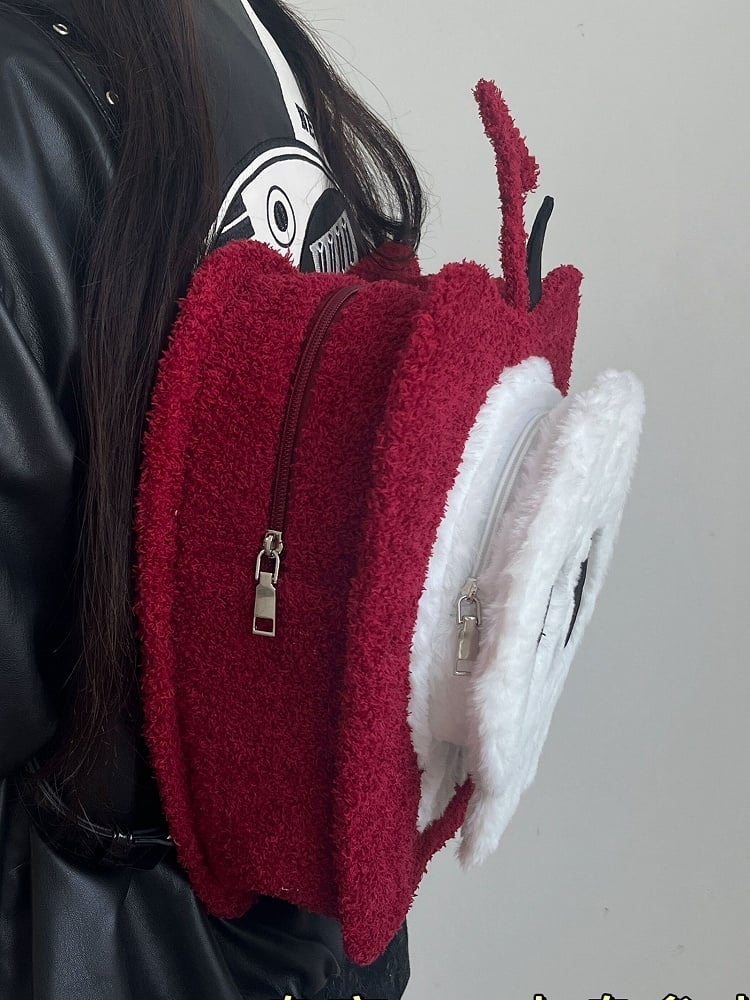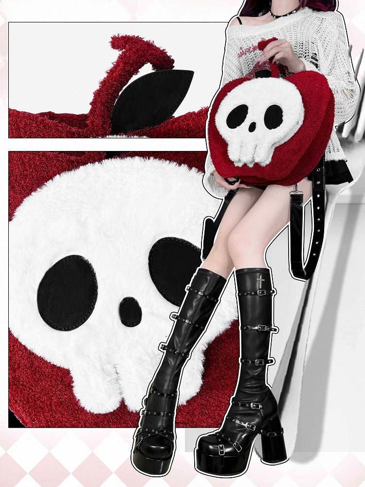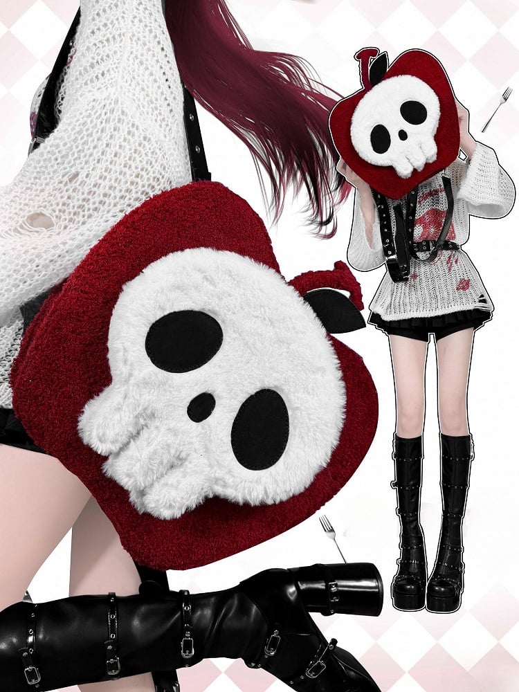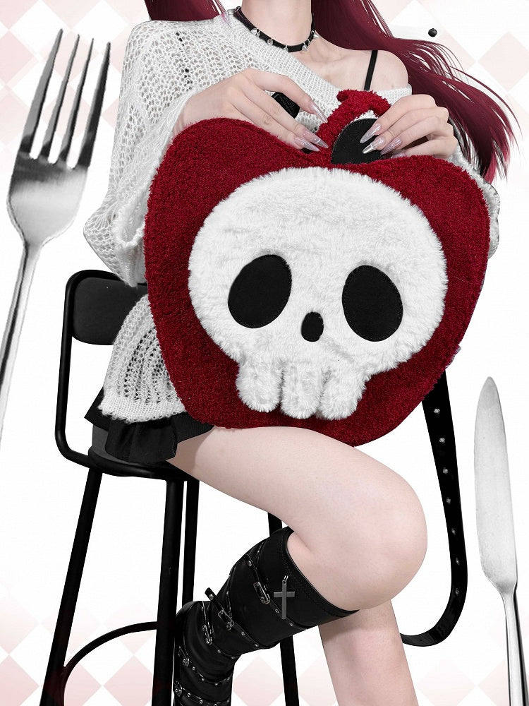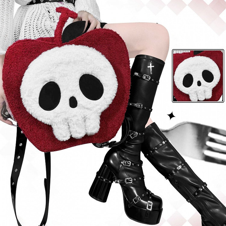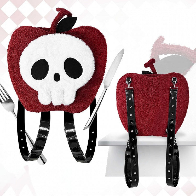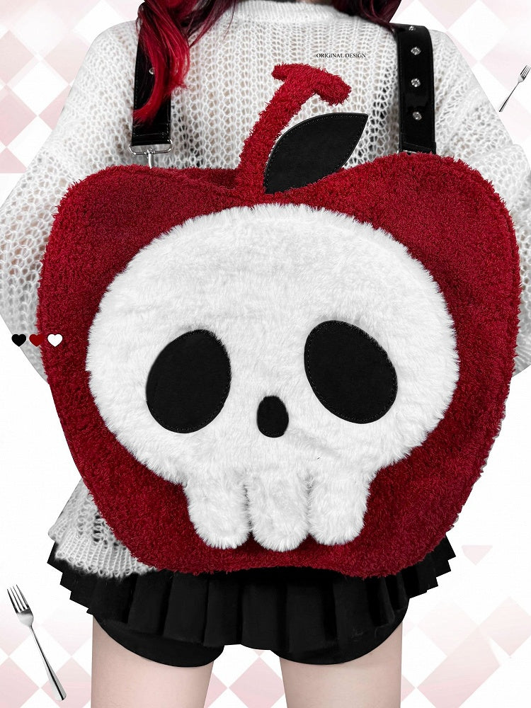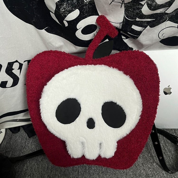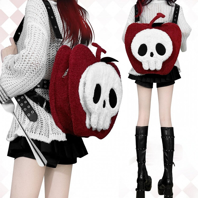 Elevate your spooky season style with our Red Apple White Skull Gothic Halloween Plush Backpack. This unique accessory combines the dark allure of gothic fashion with a touch of whimsical charm. Crafted from soft, high-quality plush material, this backpack offers both comfort and durability.