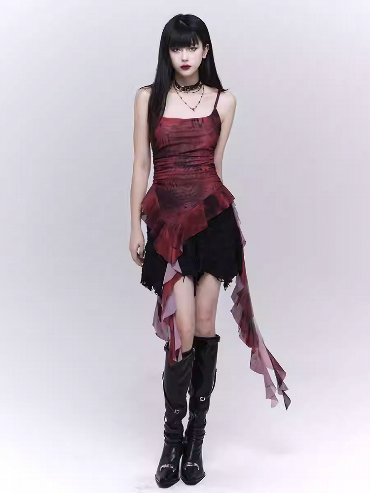 Elevate your wardrobe with this bold and stylish Red Asymmetrical Hem Camisole Top. Perfect for making a statement, this top features a unique asymmetrical design that adds a touch of modern flair to any outfit. The vibrant red hue is both eye-catching and versatile, while the delicate spaghetti straps provide a feminine and elegant look. Crafted from comfortable, high-quality fabric, this top is ideal for both casual outings and special occasions. Pair it with your favorite jeans or a sleek skirt for a chic and fashionable ensemble.
