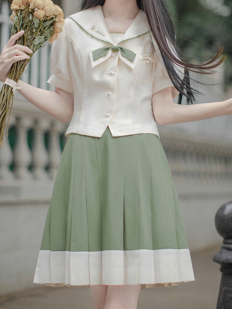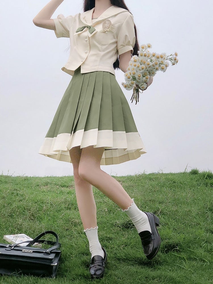 Upgrade your Kawaii wardrobe with our sailor collar beige short puff sleeves top. This adorable top features a classic sailor collar and charming puff sleeves, adding a touch of whimsy to any outfit. Made from high-quality, soft fabric, this top is perfect for creating a cute and stylish look. Pair it with a pleated skirt or high-waisted shorts for a sweet and playful ensemble.