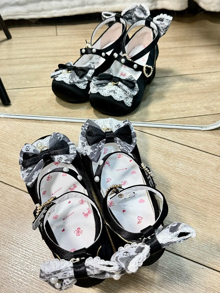 Step into a world of elegance and charm with these black Sweet Satin Lolita Low-Heel Mary Janes. The lustrous satin finish exudes sophistication, while the intricate lace trim adds a touch of vintage romance. Adorned with playful bow accents, these Mary Janes capture the essence of sweet femininity. The standout feature is the beaded heart buckle, which not only provides a secure fit but also adds an extra layer of enchantment. Delicate bead details further enhance the overall aesthetic, making these shoes a perfect choice for any Lolita ensemble.