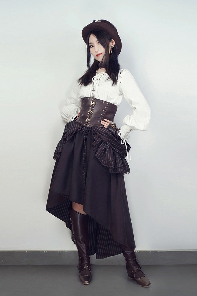 Features: It features self-tie neckline, long lantern sleeves, shoulder and cuff with lace-up.