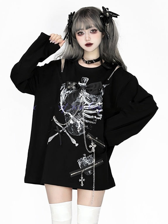 Indulge in a fusion of charming aesthetics and edgy details with our Strawberry Ribcage and Cutlery Print Top. This unique piece features a convertible zipper that opens up to reveal alluring open shoulders, effortlessly blending sweet and bold styles. Adorned with a cross charm and chain hardware, this top is a statement in itself, perfect for those who dare to stand out while embracing a playful twist.