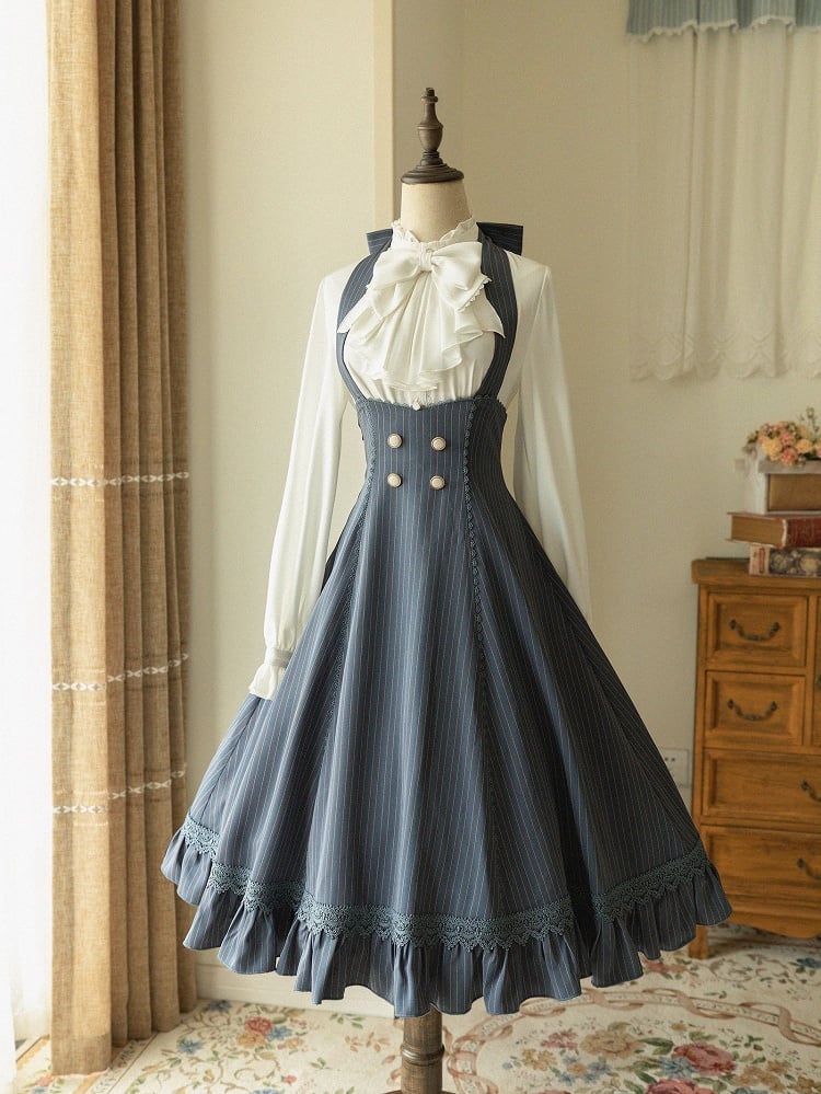 Features: It features high waist underbust design, four buttons at waist, removable halter and big bowknot, lace-up back waist, flounce hemline.
