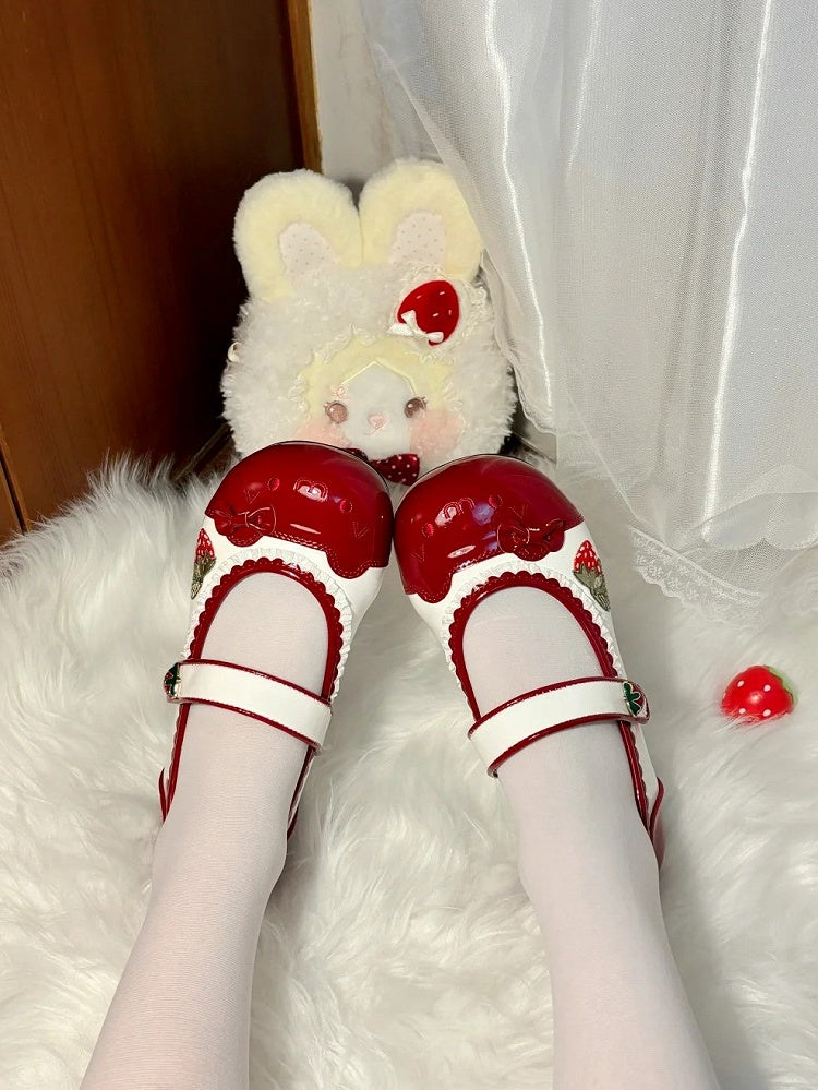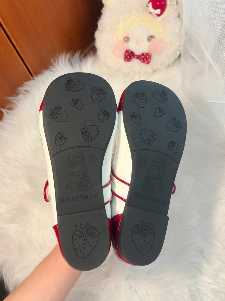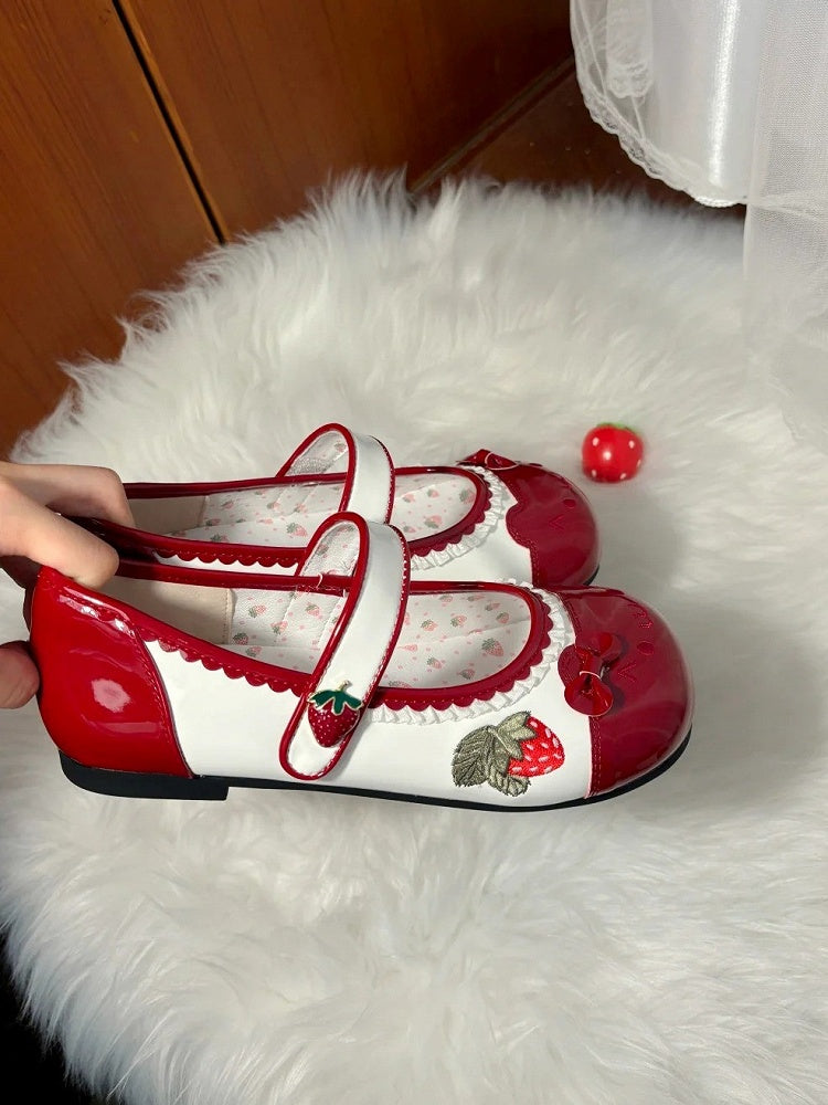 Step into a world of sweetness with these adorable red Lolita indoor slippers, perfect for adding a touch of whimsy to your at-home attire. Featuring charming strawberry embroidery and playful cat emoticon designs, these slippers are both cute and cozy. The delightful strawberry decorations and convenient Velcro straps ensure a snug fit, while the scalloped hem and ruffle trim add an extra layer of elegance.