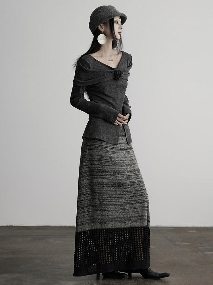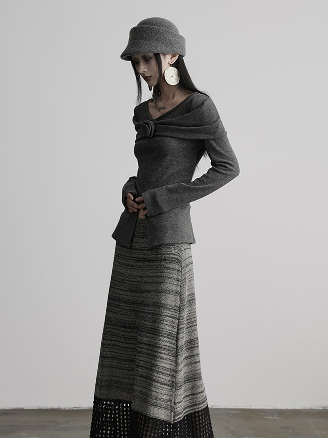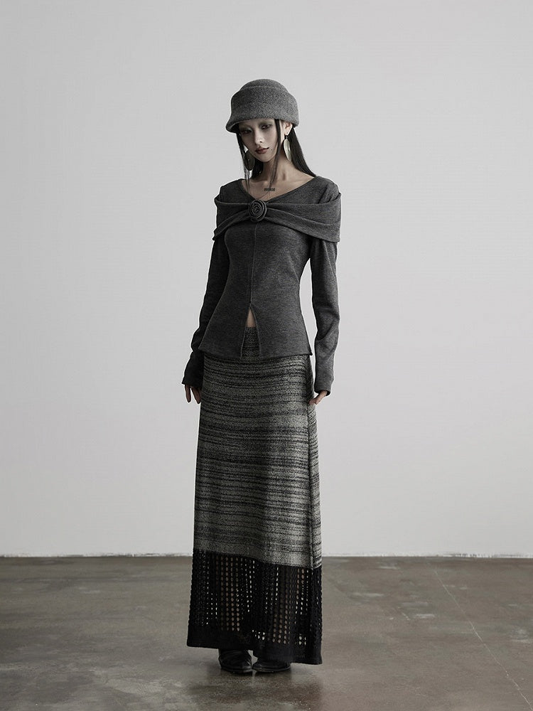 This Urban Goth light gray knit top has a V-neck to highlight the collarbone, with a floral accent adding dark romantic details. The slit design optimizes proportion, and the soft fabric balances style and comfort, suitable for light gothic daily wear, niche commuting and unique looks.