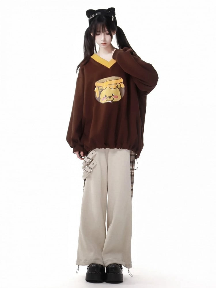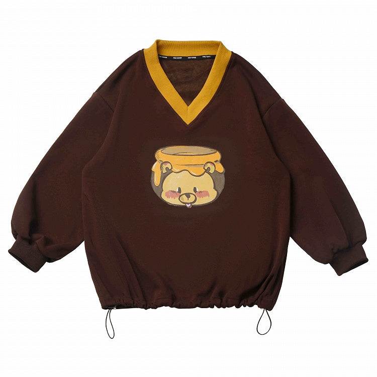Embrace the warmth and charm of winter fashion with our Cozy V-neck Honey Bear Print Sweatshirt. This delightful piece features an adorable honey bear on the front, adding a touch of whimsy to your wardrobe. Designed with a relaxed fit, it ensures comfort and style throughout the chilly season. The unique V-neckline adds a trendy twist, while the drawstring hem allows for adjustable styling, making it perfect for layering or wearing on its own.