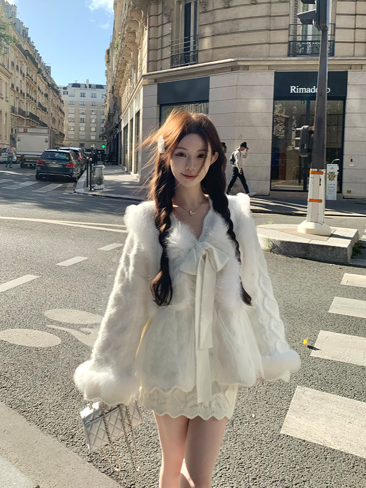 Paired with a retro cable-knit mini skirt, the set creates a classic yet feminine silhouette. Designed for warmth, texture, and timeless charm, it’s perfect for stylish winter layering, dates, and refined everyday looks.