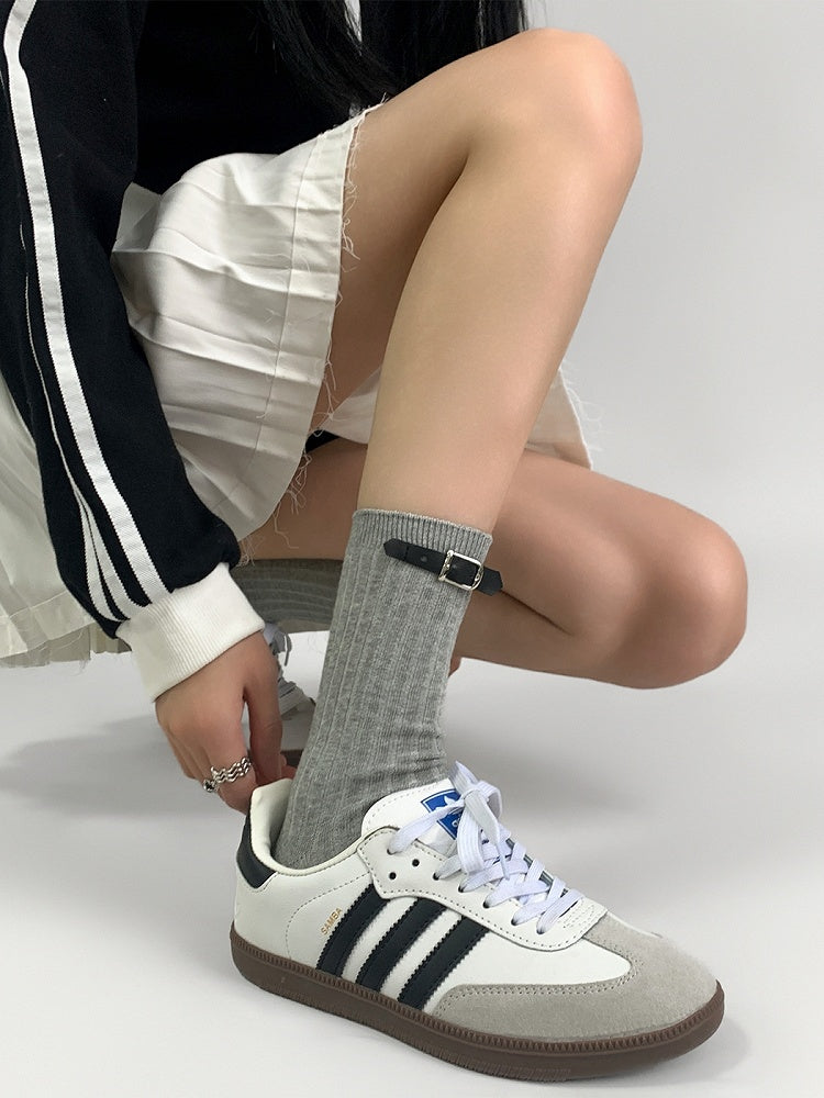 Step up your style game with our Chic PU Buckle Solid Color Socks. These socks feature an elegant PU buckle design. The solid color makes them easy to pair with a variety of looks.