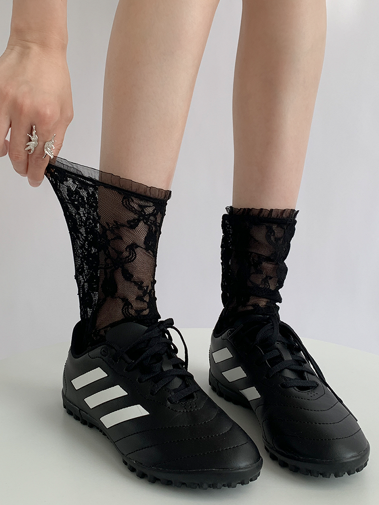 These exquisite lace socks are a must-have for any fashionista. The delicate rosette pattern adds a touch of sophistication to any ensemble, while the see-through design lends a playful and flirty vibe. Perfect for pairing with Lolita or Kawaii-inspired outfits, these socks are a versatile addition to your wardrobe.