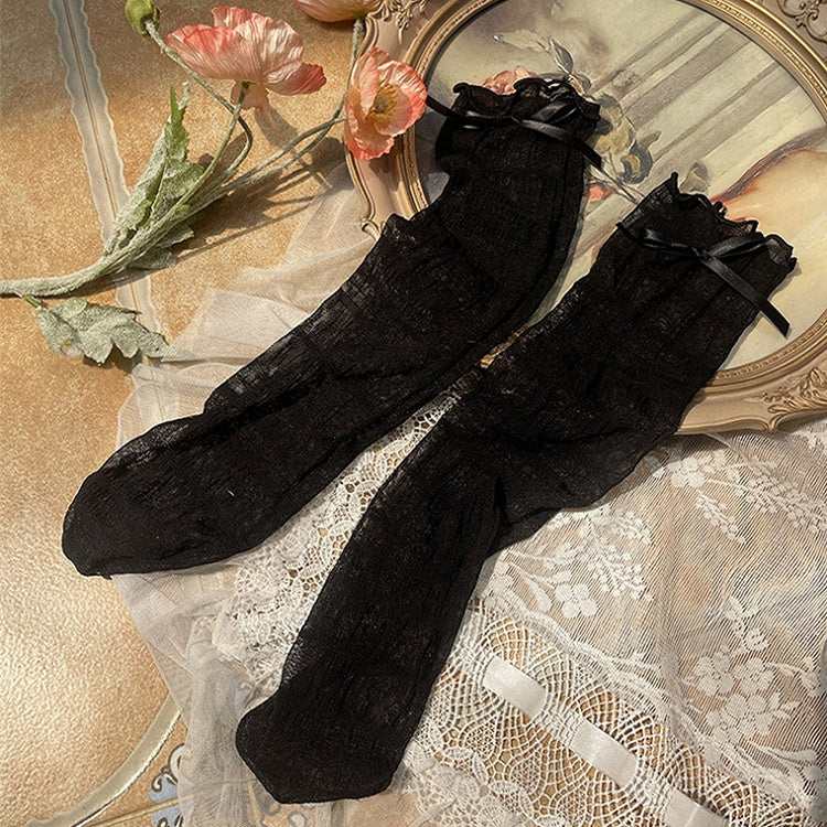 Elevate your summer outfit with these adorable white/black sweet bowknots summer loose socks. Made from high-quality, breathable fabric, these socks feature charming bowknots that add a touch of sweetness to your look. The loose fit ensures comfort and breathability, making them perfect for warm weather.