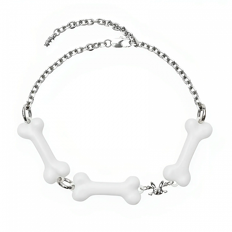 This striking White Bone Chain Necklace combines edgy elegance with a gothic twist, making it a standout accessory for those who dare to be different. Crafted with intricate white bone elements linked by a sturdy chain, this necklace exudes a bold, alternative vibe. Perfect for adding a touch of rebellious style to any outfit, it pairs effortlessly with both casual and formal ensembles.