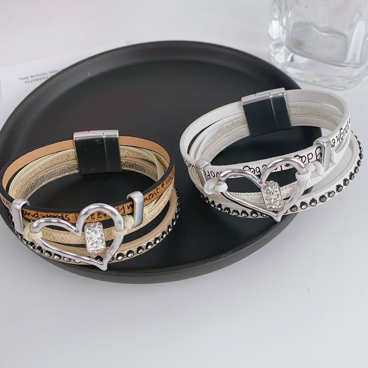 This exquisite bracelet features a charming heart design adorned with sparkling rhinestones, available in both classic white and warm brown tones. Its versatile elegance makes it a perfect accessory for adding a touch of glamour to any outfit, whether you're dressing up for a special occasion or adding a bit of sparkle to your everyday look. Crafted with attention to detail, this bracelet is a must-have for those who appreciate timeless style and sophistication.