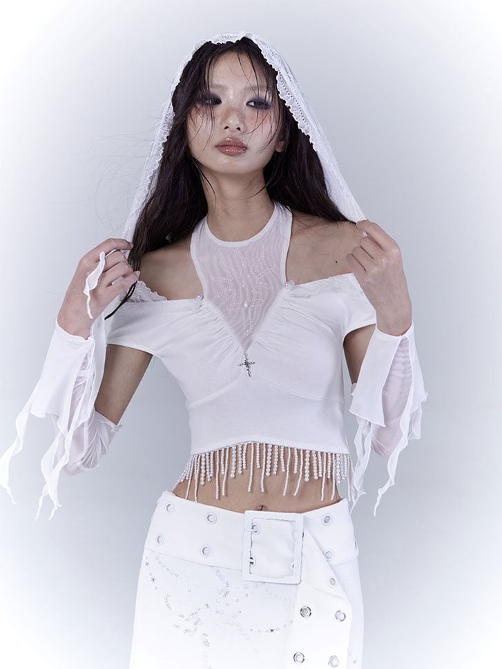 Elevate your punk-inspired wardrobe with this striking White Lace Patches Neckline Punk Top. This unique piece features intricate lace detailing at the neckline, adding a touch of elegance and contrast to its edgy design. The top combines the rebellious spirit of punk fashion with a hint of sophistication, making it perfect for those who love to stand out.