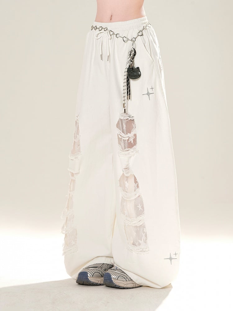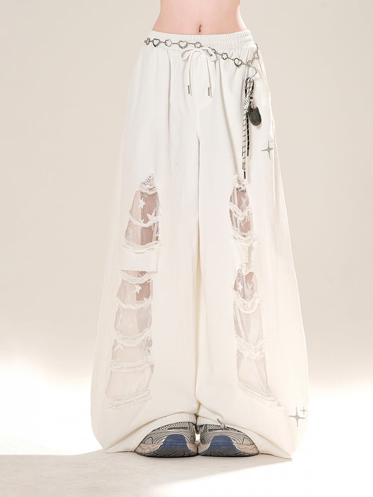 Elevate your casual wardrobe with these effortlessly chic White Drawstring Waist Distressed Wide-Leg Pants. Crafted for both comfort and style, these pants feature a relaxed wide-leg silhouette that flows gracefully with every step. The distressed detailing adds a touch of edgy flair, while the adjustable drawstring waist ensures a perfect fit.