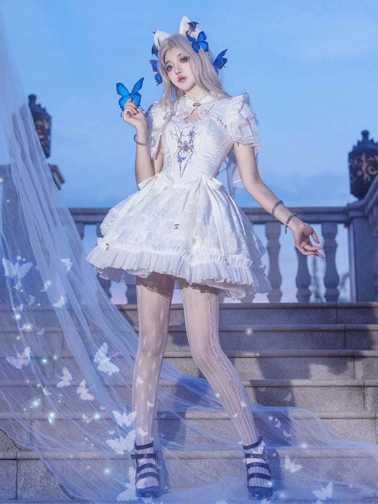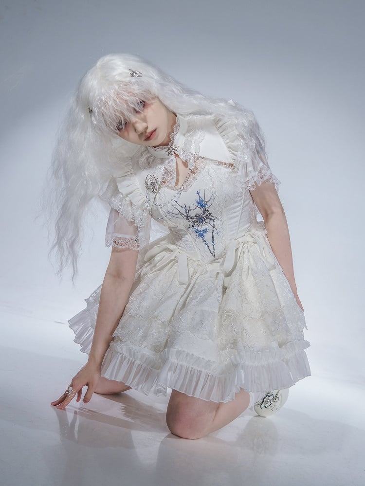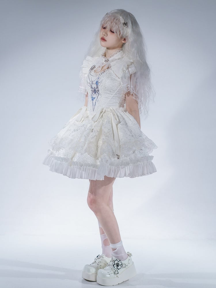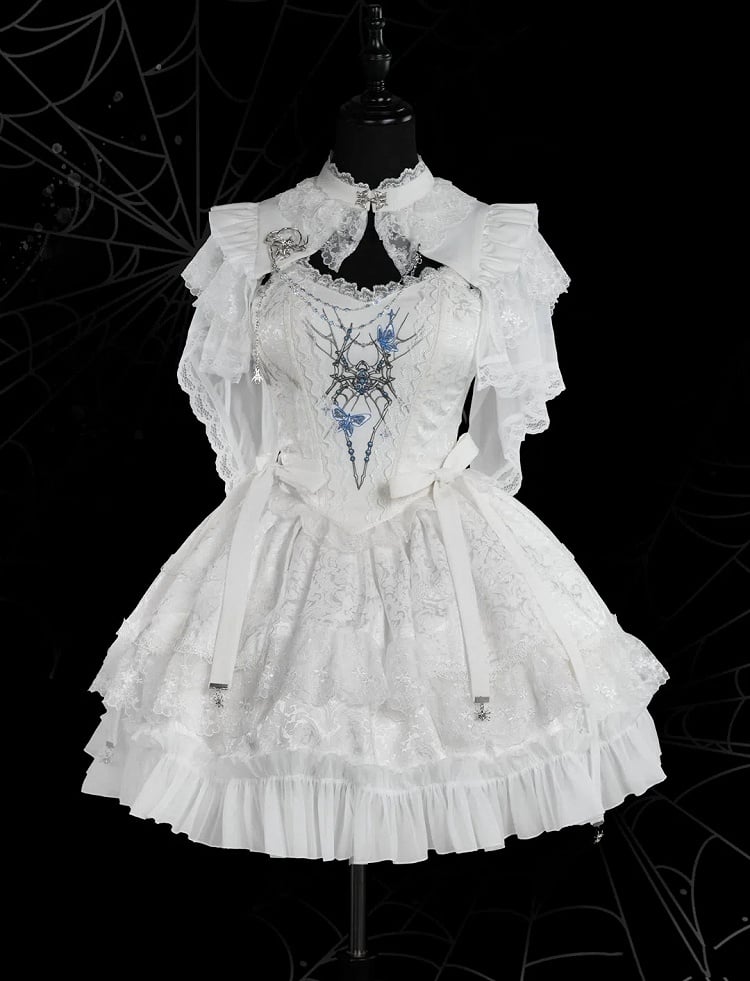 Featuring intricate spider embroidery, this corset top accentuates your silhouette while adding a touch of eerie elegance. The boned structure provides excellent support and shape, enhancing your natural curves. A flowing skirt that complements the corset top perfectly, creating a cohesive and enchanting look. The spider brooch adds a final touch of gothic charm, can be pinned to the corset, shrug, or even your favorite bag for a personalized look.